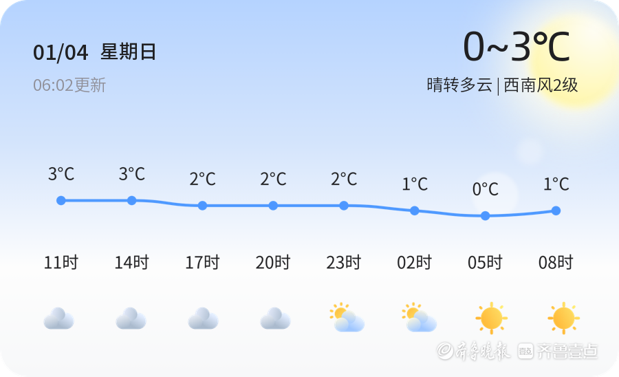 今天是1月4日,农历十一月十六。烟台市今天天气晴转多云,白天气温为3℃,夜间最低气温为0℃,西南风2级,空气湿度75%。全市各区天气情况总体平稳,市民可以正常出行,但需注意早晚温差较大,及时增添衣物。明天天气与今天相比有所变化,预计明天天气为晴转多云,白天气温为3℃,夜间最低气温为-4℃,北风3-4级。相较于今天的西南风,明天风力有所增强,市民在出行时应防范大风带来的不便。未来三天,烟台市天气将呈现波动趋势。预计周二天气晴朗,气温回升至7℃,但夜间最低气温仍为-1℃;周三多云转晴,气温略有下降,白天气温为2℃,夜间最低气温为-5℃;周五将迎来小雪天气,气温回升至9℃,但风力较大,市民需注意防范雨雪天气对出行的影响。温馨提示