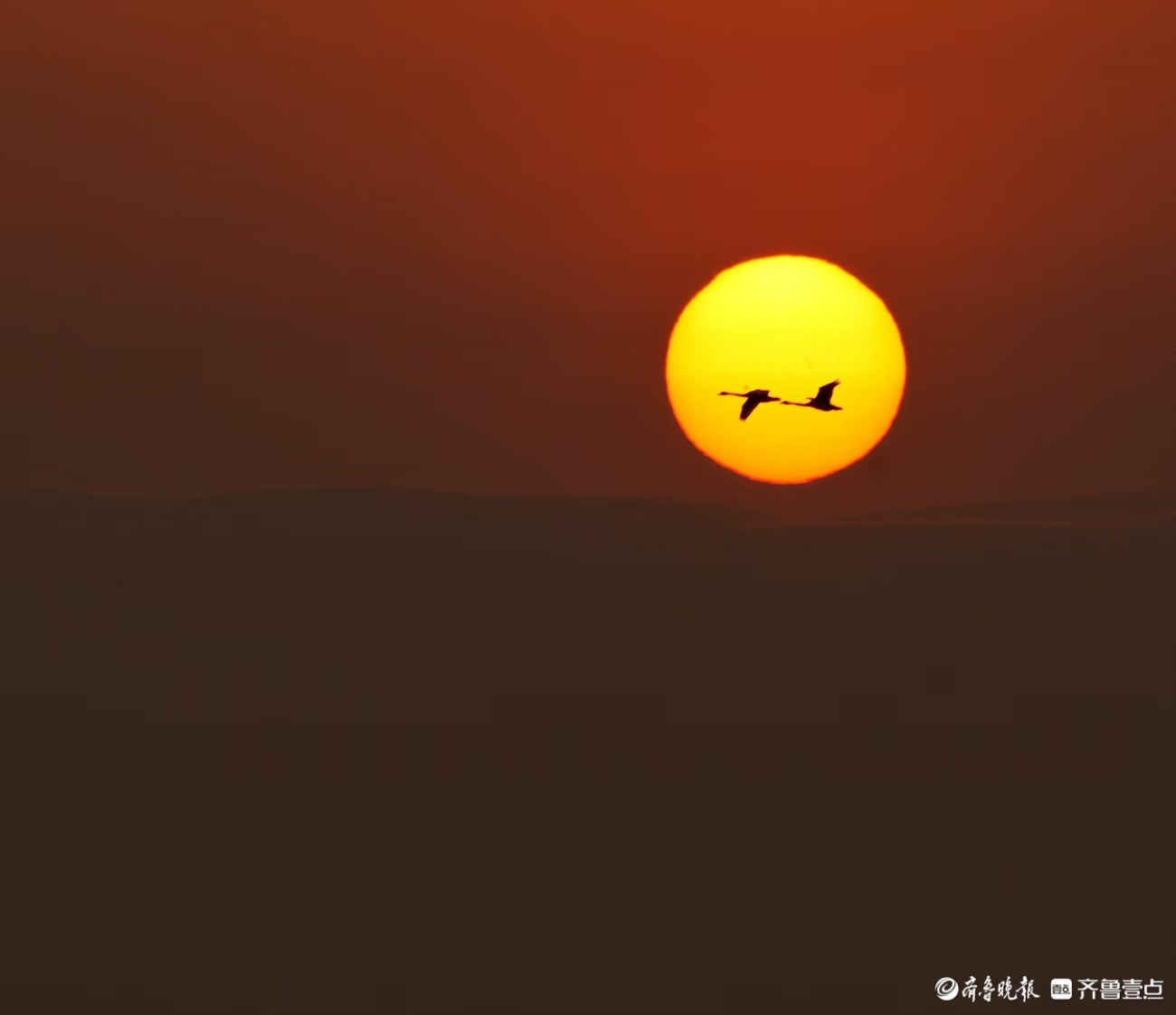 江西余干县鄱阳湖白鹤洲,天鹅穿日