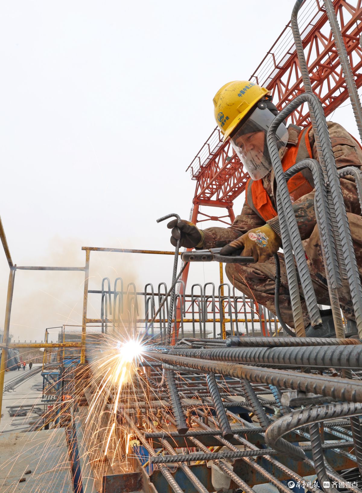 新年伊始,国家重点项目潍(坊)宿(迁)高铁山东省郯城段工人坚守工地,抢抓工期,精心推进标段施工。张春雷摄