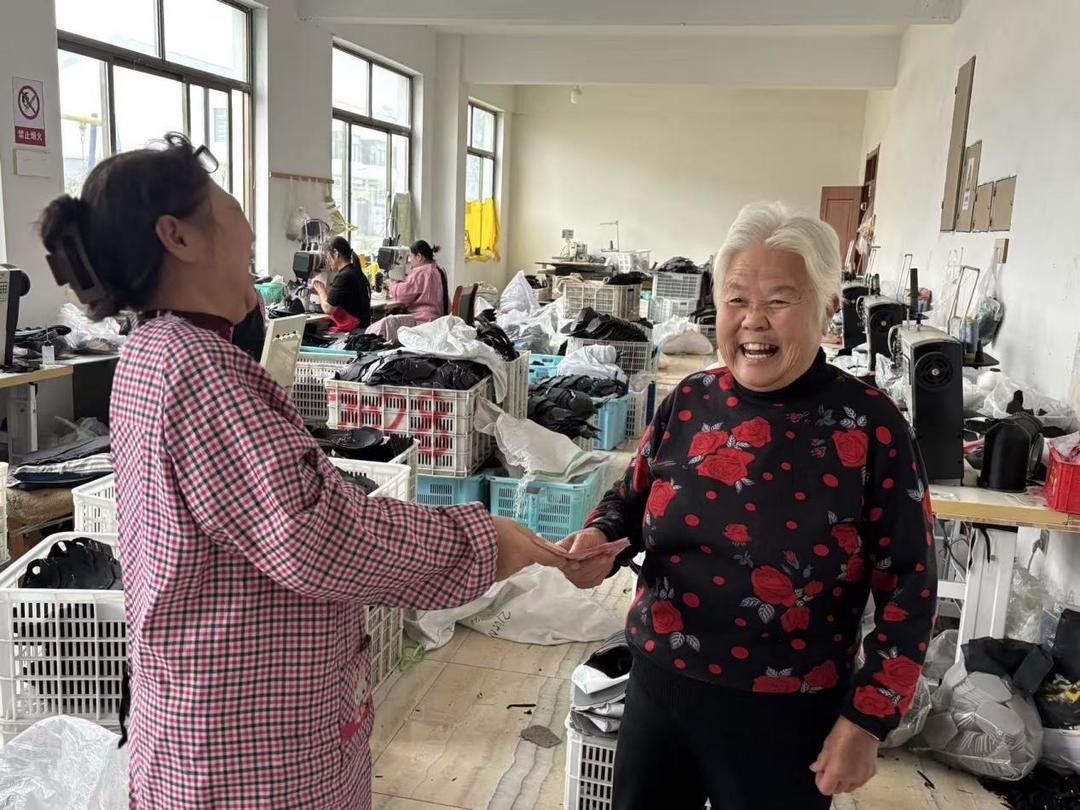 “像这样在家门口干个活,不光能挣钱,还能凑一堆儿说个话,家里有事的时候也耽误不了。”在潍坊高密市东北乡社区武家庄村的“鞋帮富”共富工坊里,今年75岁的张兰花一边修剪鞋帮线头,一边笑着说,她做梦也没想到,自己这个岁数了还能在家门口上班。在高密,像张兰花这样在家门口实现灵活就业的村民越来越多。