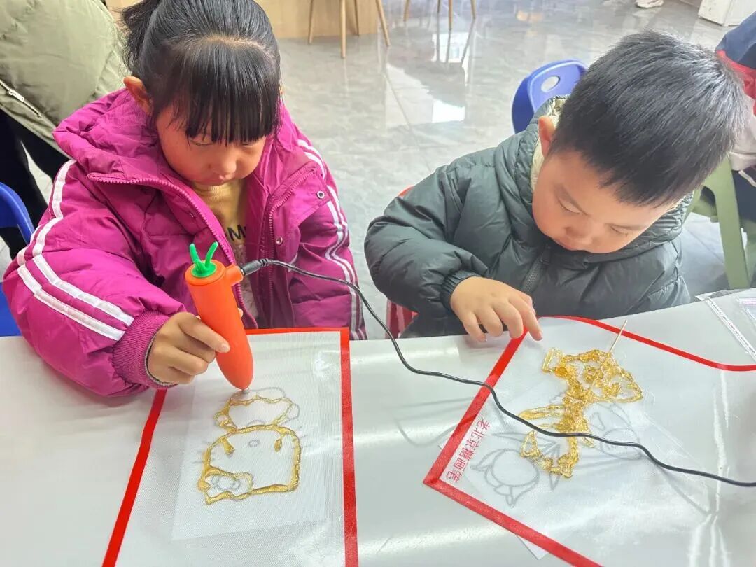 东塘社区在文艺表演前特别设置了“拓福活动”,居民亲手拓印福字,将传统非遗带来的福气带回家。长乐社区开展糖画DIY活动,工作人员从糖画历史讲起,细致指导温度把控、线条勾勒等技巧,家长与孩子在协作中共同解锁非遗技艺,定格甜蜜亲子时光。