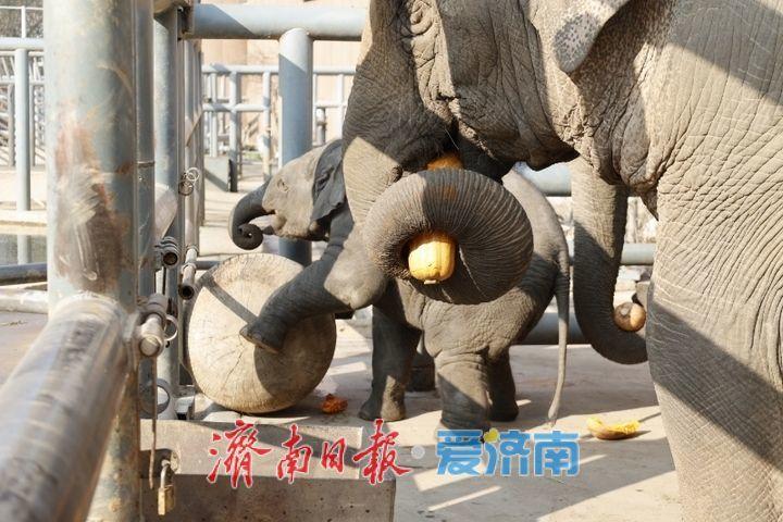 小象有名字啦!济南动物园小象妈妈为其选名“撒欢”