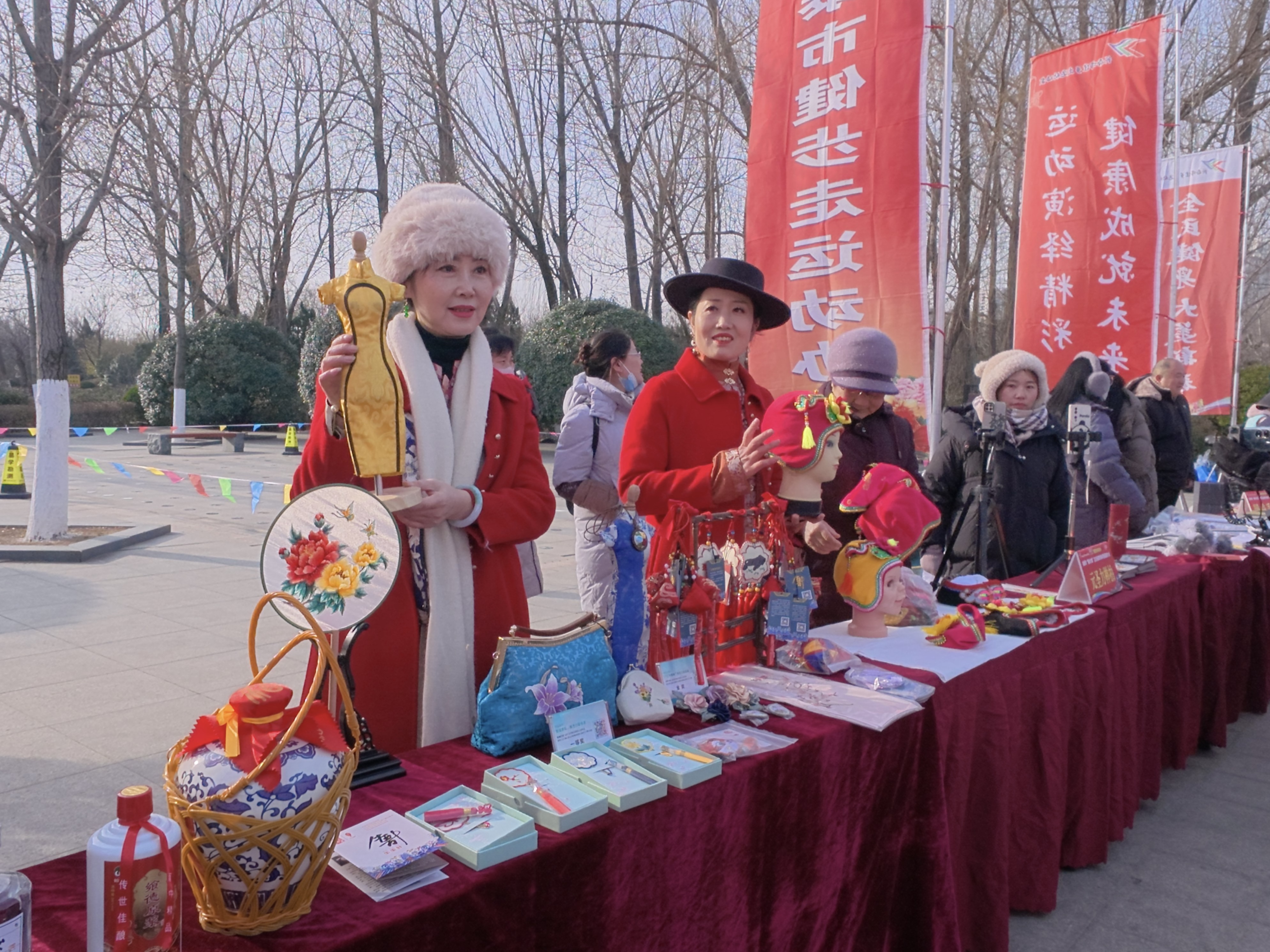 健步走结束后,市民们陆续来到主会场周边年味浓浓的“黄河大集”展销区。活动现场,新泰非遗展示区成为人气聚集点。红纸翻飞的剪纸摊位前,匠人手起刀落,一幅幅寓意吉祥的作品跃然纸上;面塑展台上,造型生动的作品吸引孩子们驻足围观;绣品、手工艺品整齐陈列,既可观赏体验,也可现场选购。不少市民一边了解非遗技艺,一边选购特色产品,在“逛大集”的烟火气中感受传统文化的魅力,让非遗展示既“有看头”,也“有买头”,进一步激活节日消费活力。“逛着公园就把年货办了,还能让孩子近距离接触非遗文化,很有意义。”市民曹雪萍说。