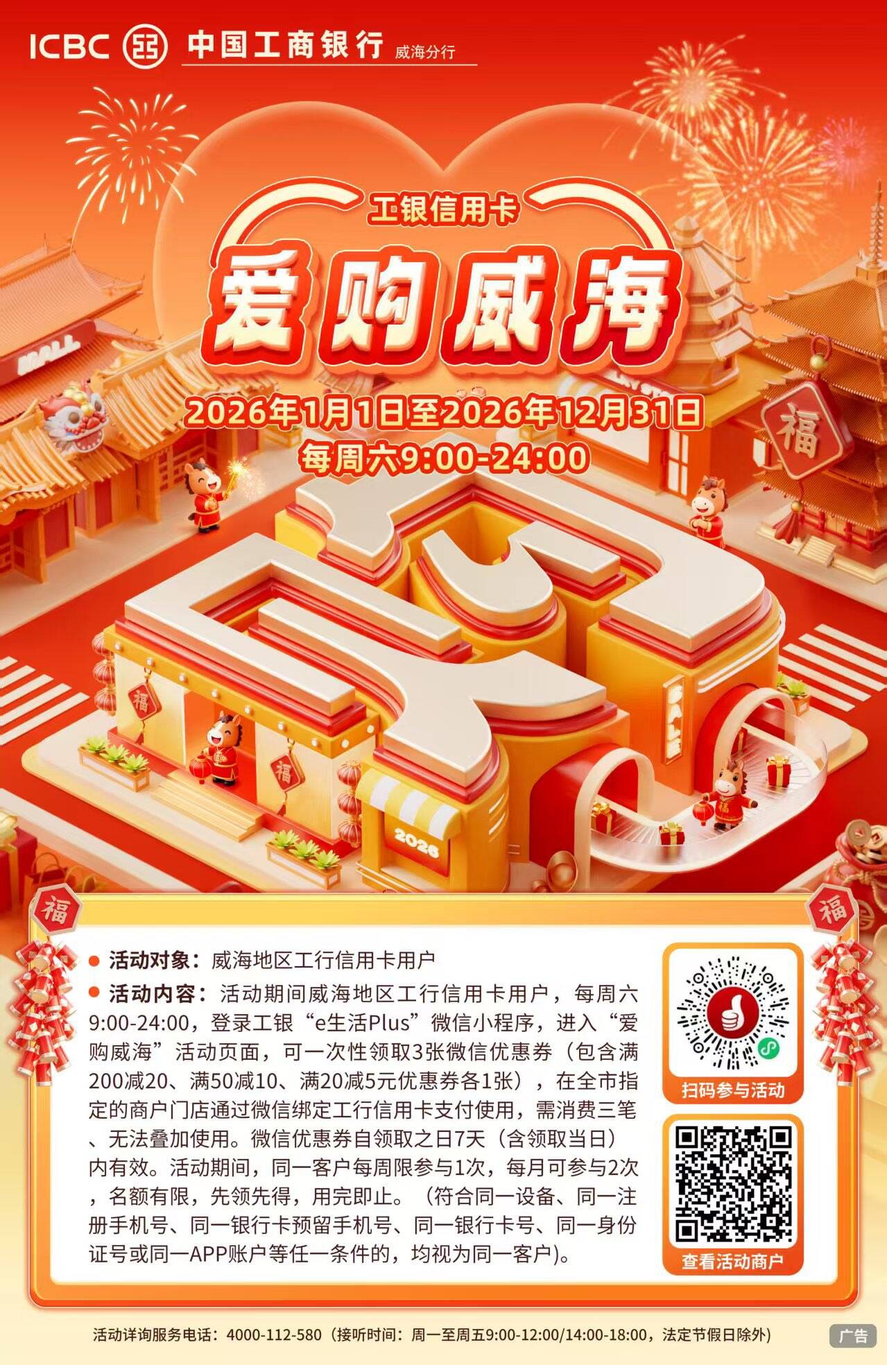 工行信用卡爱购威海,全年周六享优惠