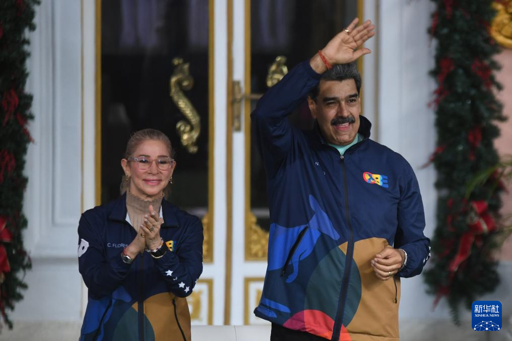 这是2025年11月21日马杜罗及其夫人在委内瑞拉首都加拉加斯出席活动的资料照片。