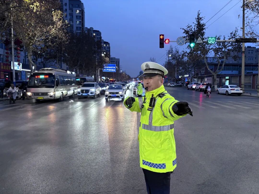 道路上,他们是畅通的“交通灯塔”,重点路段疏导车流、引导停放,为群众出行安全保驾护航。