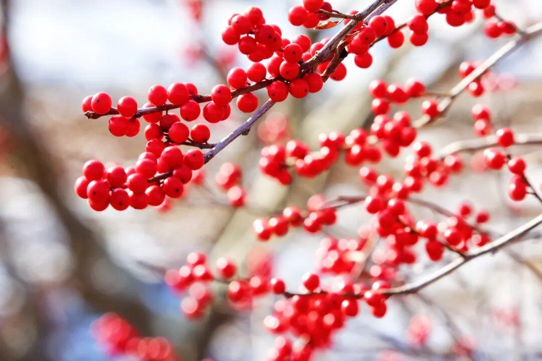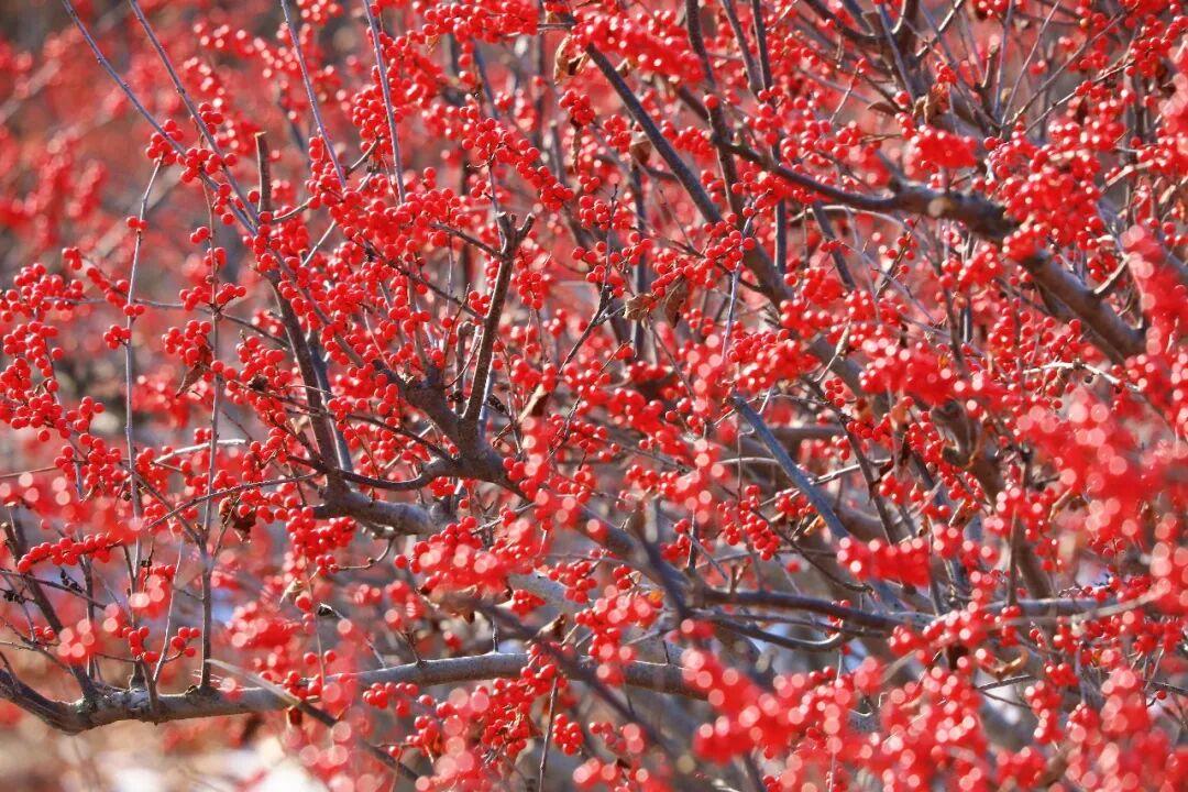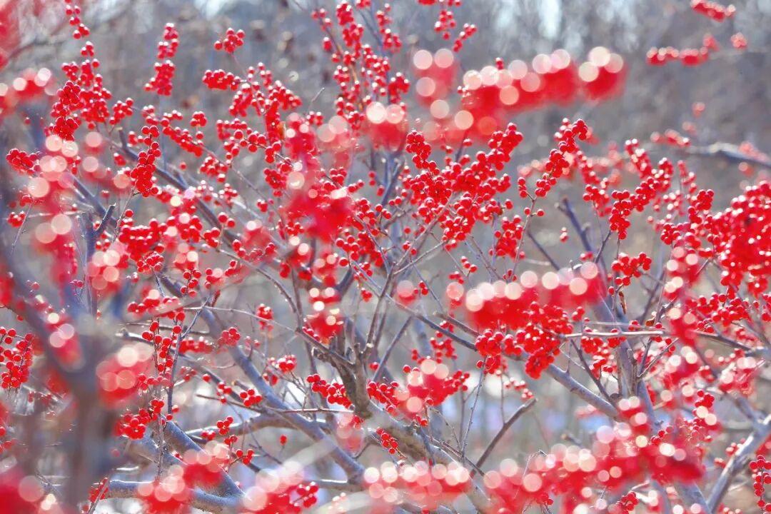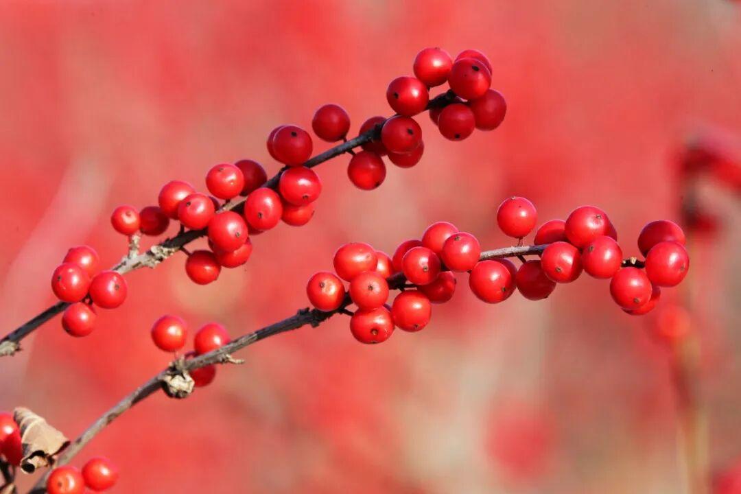 这片红,是大自然勾勒的精致画作。不同于其他冬青的常绿,北美冬青以“落叶显果”的独特姿态,让果实成为绝对的主角。阳光下,红色的果实表面光泽流转,宛如一串串精心打磨的红宝石。