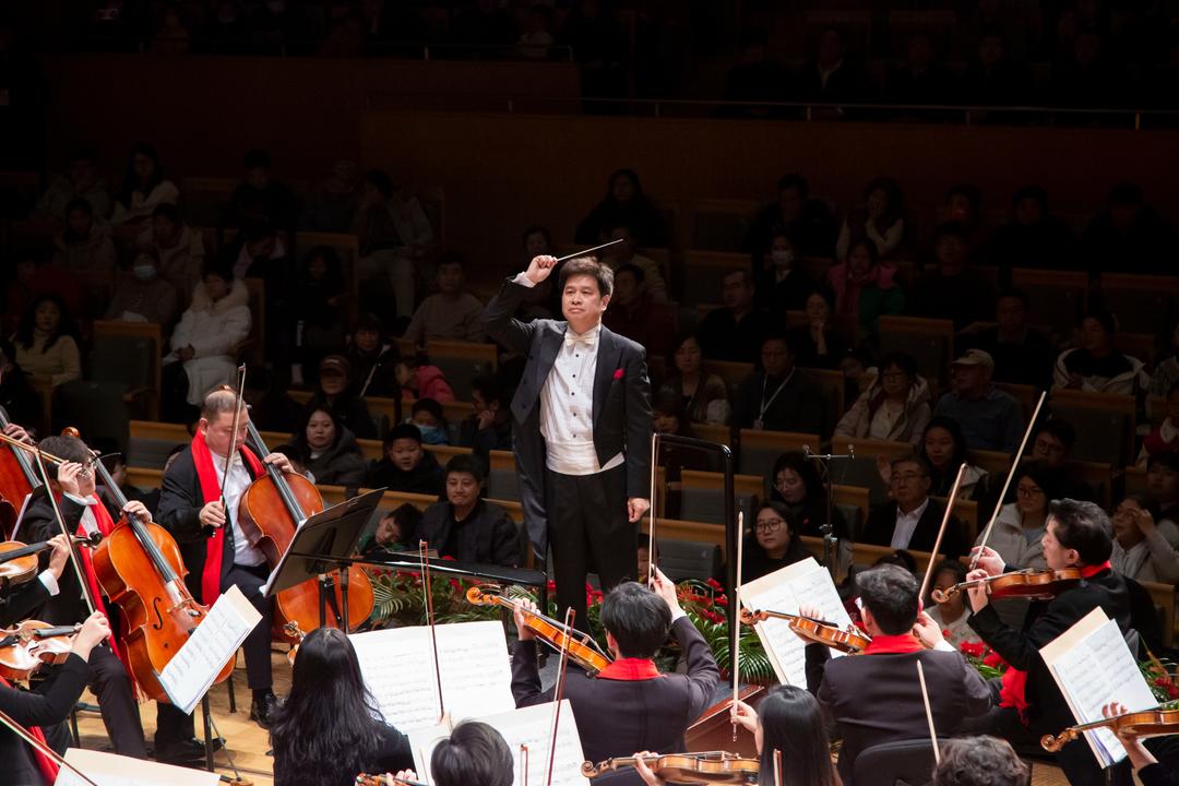 音乐会在曲目设计上独具匠心,分为“中国韵律”与“西方古典”两大篇章。上半场在张朝《春之序曲》中拉开帷幕,范临风带来的《沂河水歌》与《挂红灯》两首作品以清越笛音勾勒出浓郁的齐鲁风情,使观众仿佛漫步沂河岸边,感受山东乡村的节日氛围。下半场则将观众带入维也纳新年音乐会的传统氛围。乐团精湛演绎了小约翰·施特劳斯的《蝙蝠序曲》《狩猎波尔卡》等经典作品,轻快的旋律令人陶醉。女高音歌唱家武赫献唱的《笑之歌》将现场气氛推向高潮,展现了新年音乐会的欢乐精髓。