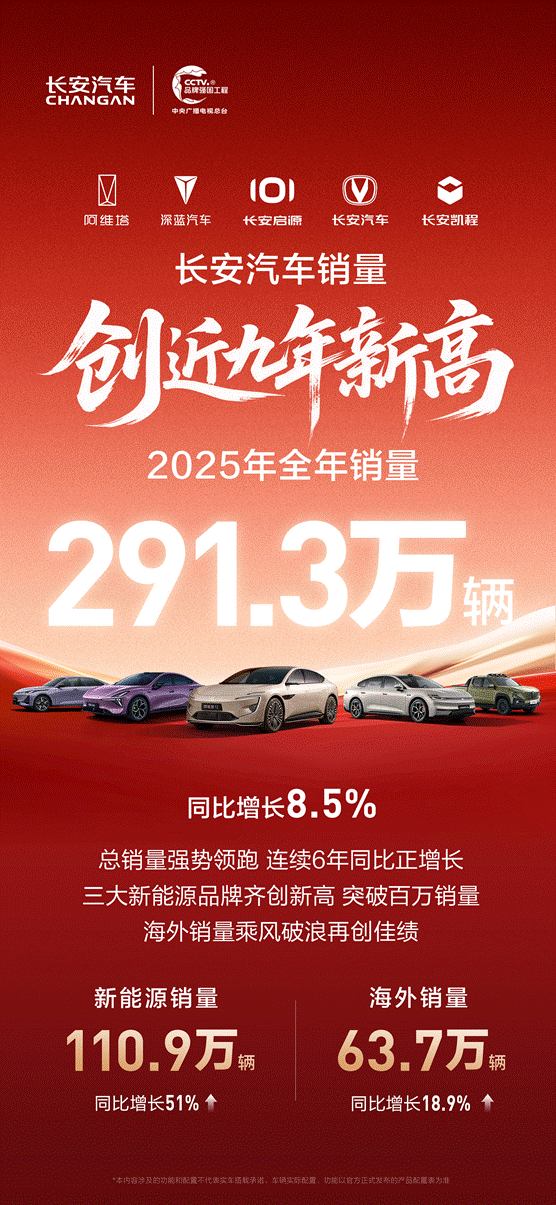 长安汽车2025年销量超291万辆,四大维度齐创历史新高