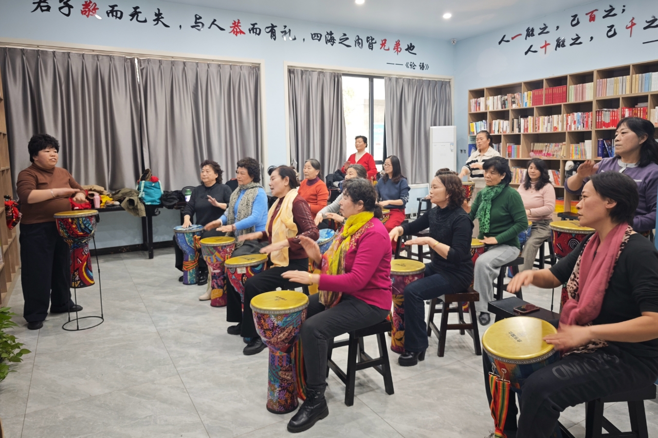 【文化社区・樱学善行】丰富文化生活 奏响幸福乐章——滕州龙泉街道樱花苑社区新时代文明实践站开展樱韵鼓风社团非洲鼓第16期公益训练活动