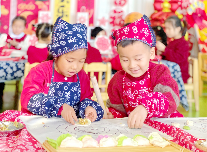 为了让幼儿在传统文化氛围中迎接新年,近日,西海岸新区隐珠中心幼儿园孟家滩社区园组织开展“非遗嘉年华,元旦妙趣多”主题活动。活动中,小朋友们在老师的指导下舞龙舞狮、剪窗花、写“福”字、包饺子,通过一系列富有仪式感的体验环节,亲身感受中华优秀传统文化的魅力,在幼小心灵中种下文化传承的种子。(大众新闻·青岛西海岸报记者丁一)