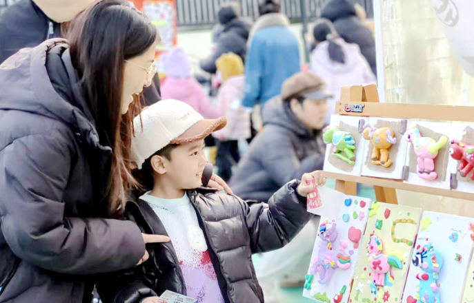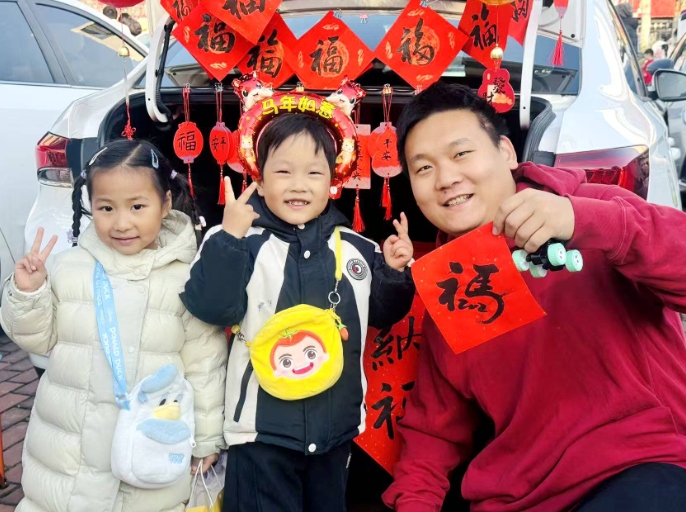 活动在热闹的“后备箱新春市集”中拉开帷幕。孩子们在家长的协助下,化身“小掌柜”,设计摊位、陈列商品、热情叫卖。市集上绘本、玩具、手作、零食等琳琅满目,孩子们使用“新年货币”进行交易,在讨价还价、以物易物中,不仅体验了真实的社会角色,更锻炼了沟通表达、数学计算和社交协作能力。家长们在陪伴与协作中,沉浸式感受孩子的点滴成长,亲子情感在欢声笑语中持续升温。
