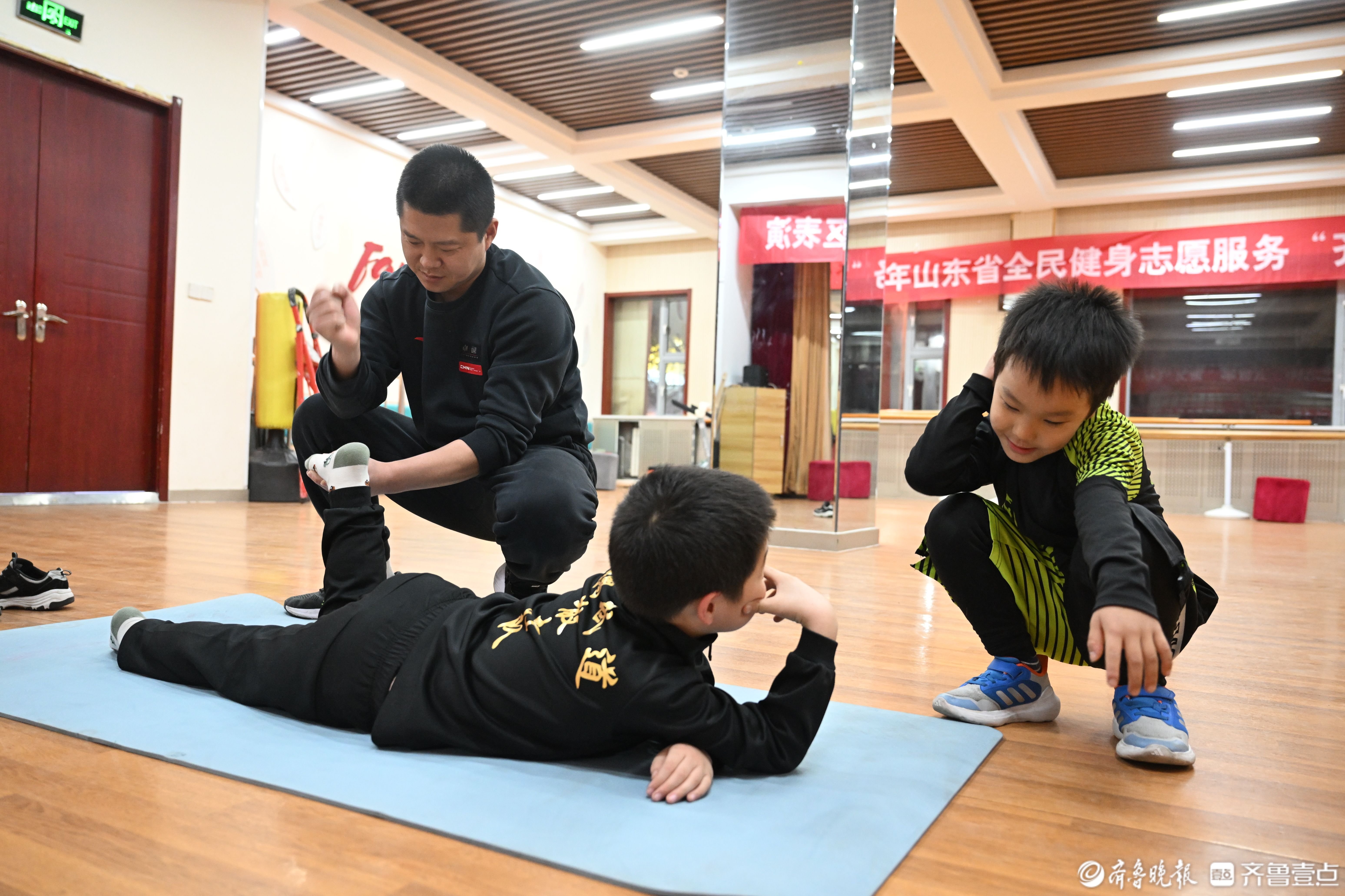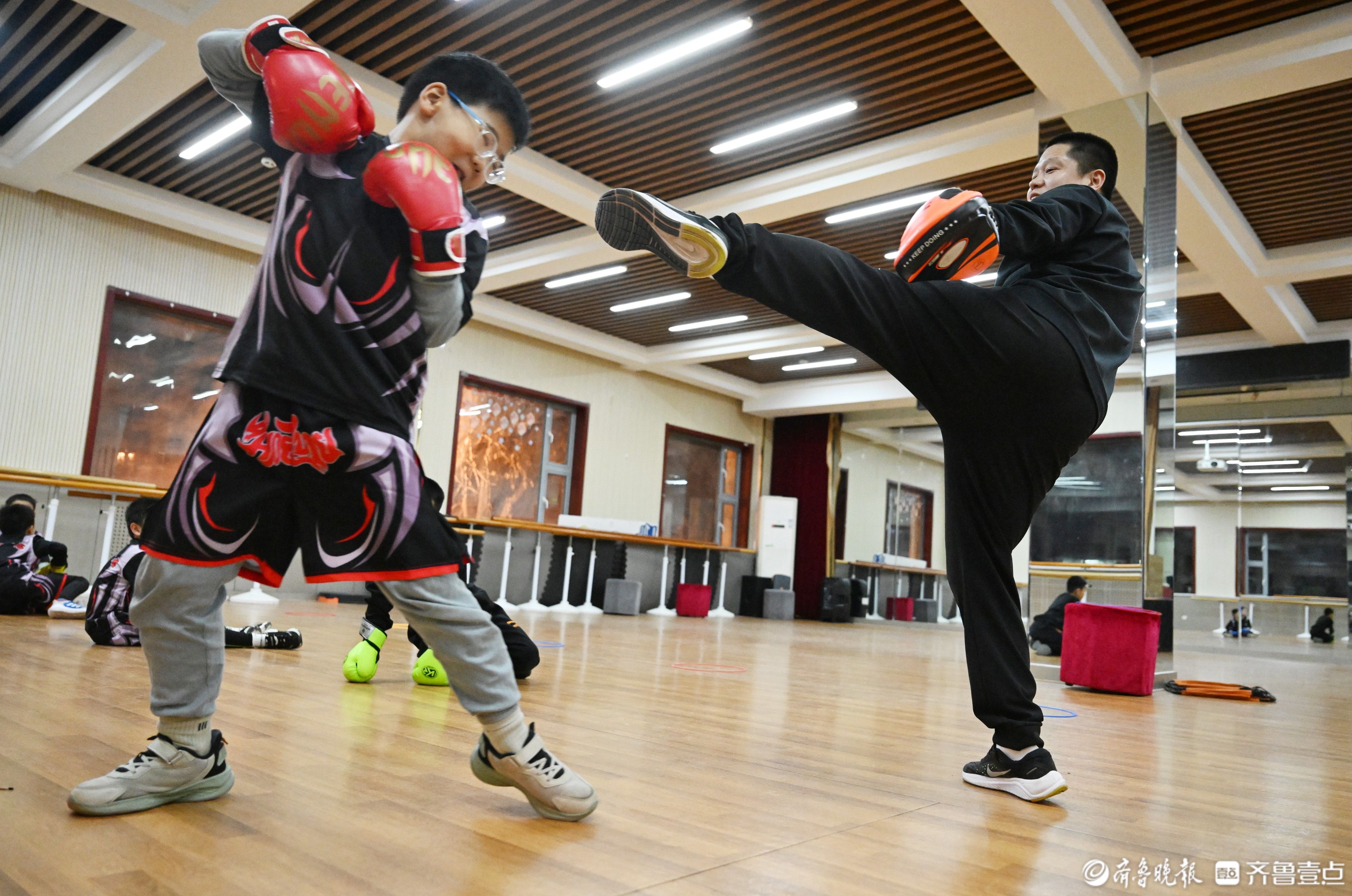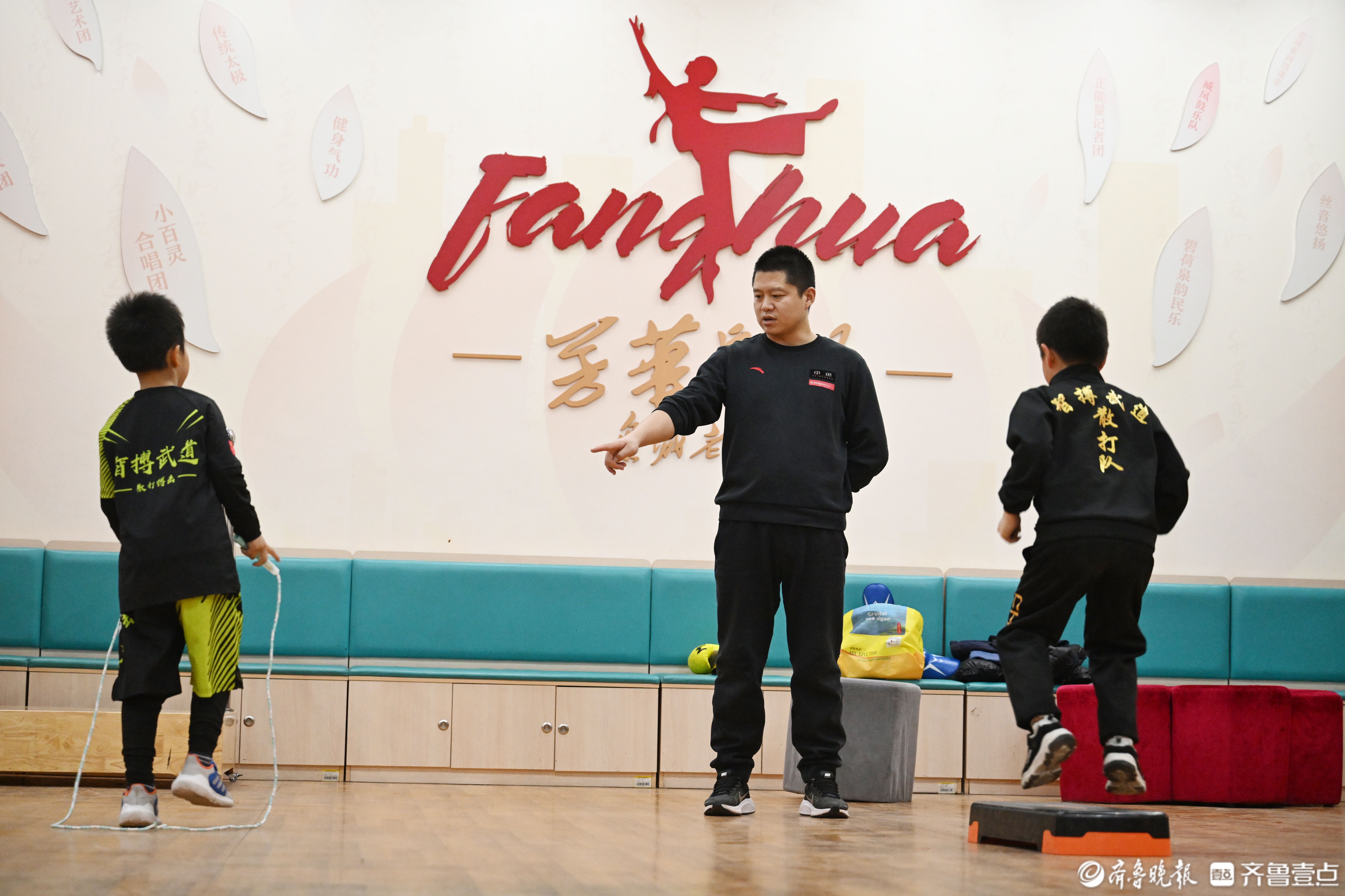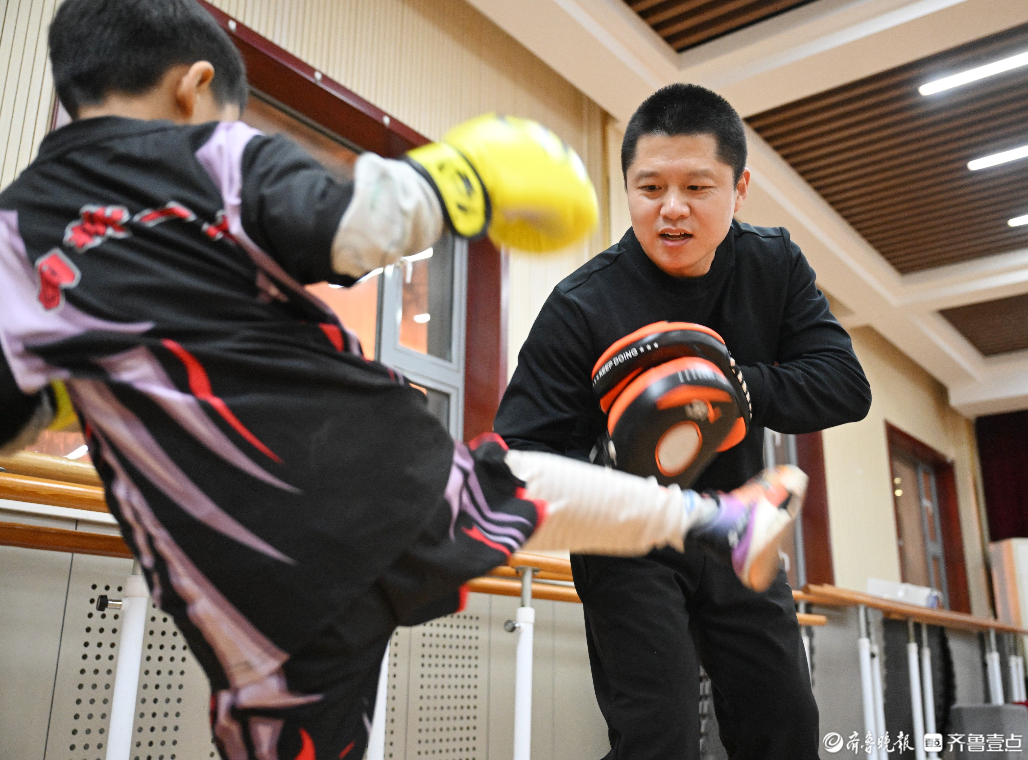 每逢周一、周四傍晚,济南甸柳第一社区活动中心二楼,就会传出“嗨嗨”的呐喊声和“嘭嘭”的击打声,一群孩子正跟随一位身形矫健的教练练习搏击基本功。这位教练就是社区散打搏击主理人吴志强,曾经的全国空手道亚军,如今孩子和家长口中的“吴教头”。