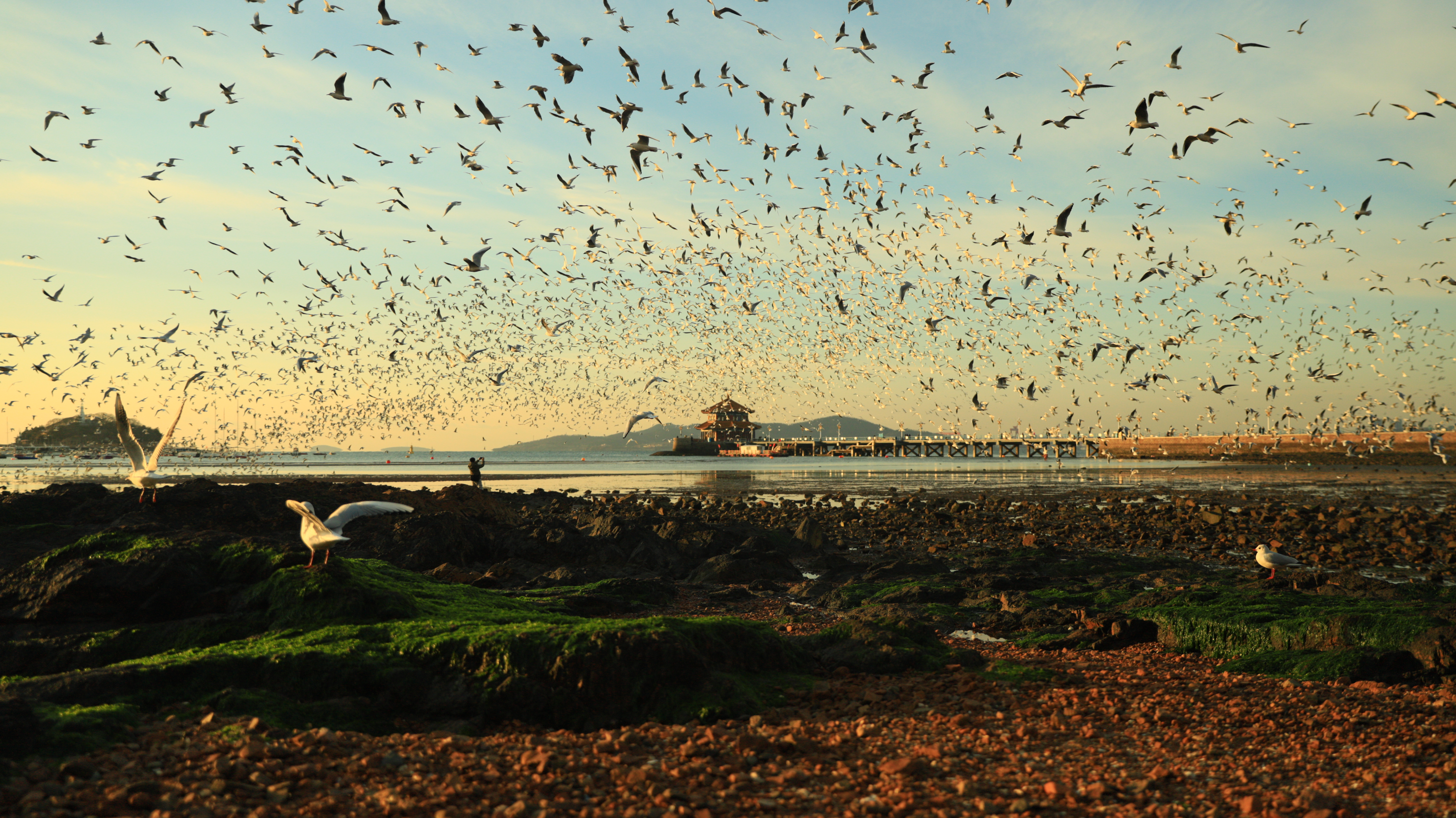 “山东邂逅美”摄影大赛|青岛万只海鸥振翅庆新年