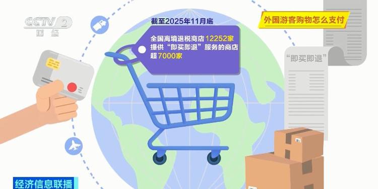 截至2025年11月底,全国离境退税商店已达12252家,提供“即买即退”服务的商店超过7000家。