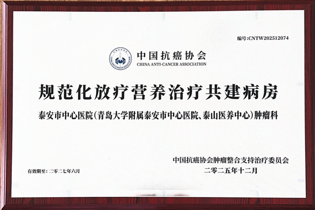 喜报!泰安市中心医院综合肿瘤科获评“全国规范化放疗营养治疗共建病房”,肿瘤放疗营养支持迈入全国规范化行列