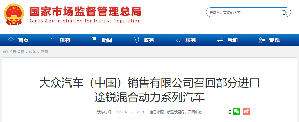 日前,大众汽车(中国)销售有限公司根据《缺陷汽车产品召回管理条例》和《缺陷汽车产品召回管理条例实施办法》的要求,向国家市场监督管理总局备案了召回计划。