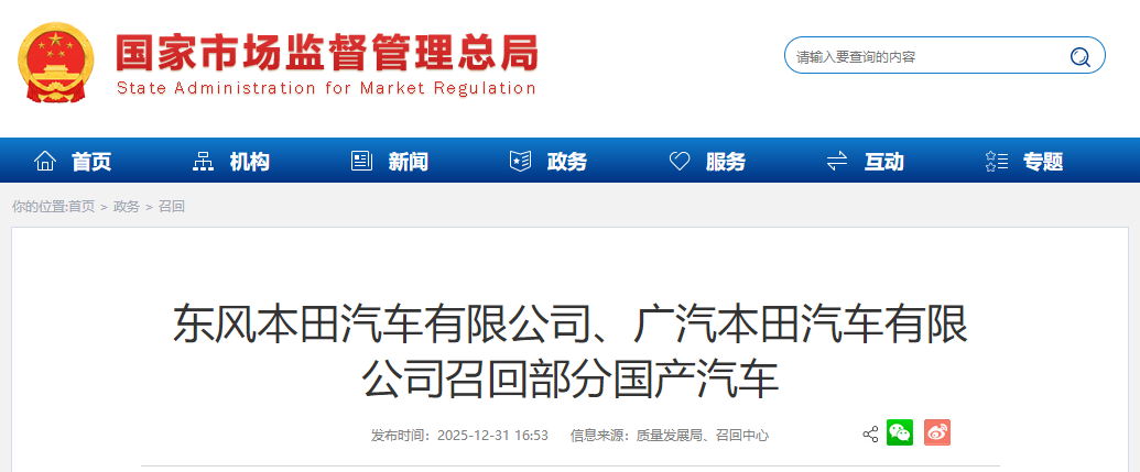 日前,东风本田汽车有限公司、广汽本田汽车有限公司根据《缺陷汽车产品召回管理条例》《缺陷汽车产品召回管理条例实施办法》和《机动车排放召回管理规定》的要求,向国家市场监督管理总局备案了召回计划。
