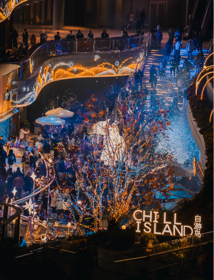 2025年12月31日晚,济南万象城下沉广场改造升级而成的“自游岛Chill Island”,在璀璨光影中正式揭幕。活动现场,在共青团济南市委、历下区政府、姚家街道及市民们的共同见证下,“自游岛”被授予“青年集聚区”地标称号。这一称号的授予,不仅是物理地标标识的落地,更标志着一处兼具开放性、松弛感与活力感的青年社交新场域正式落成。此举既是万象城推进商业空间迭代升级的关键举措,更是其积极响应济南市建设青年发展友好型城市战略号召的有力实践。