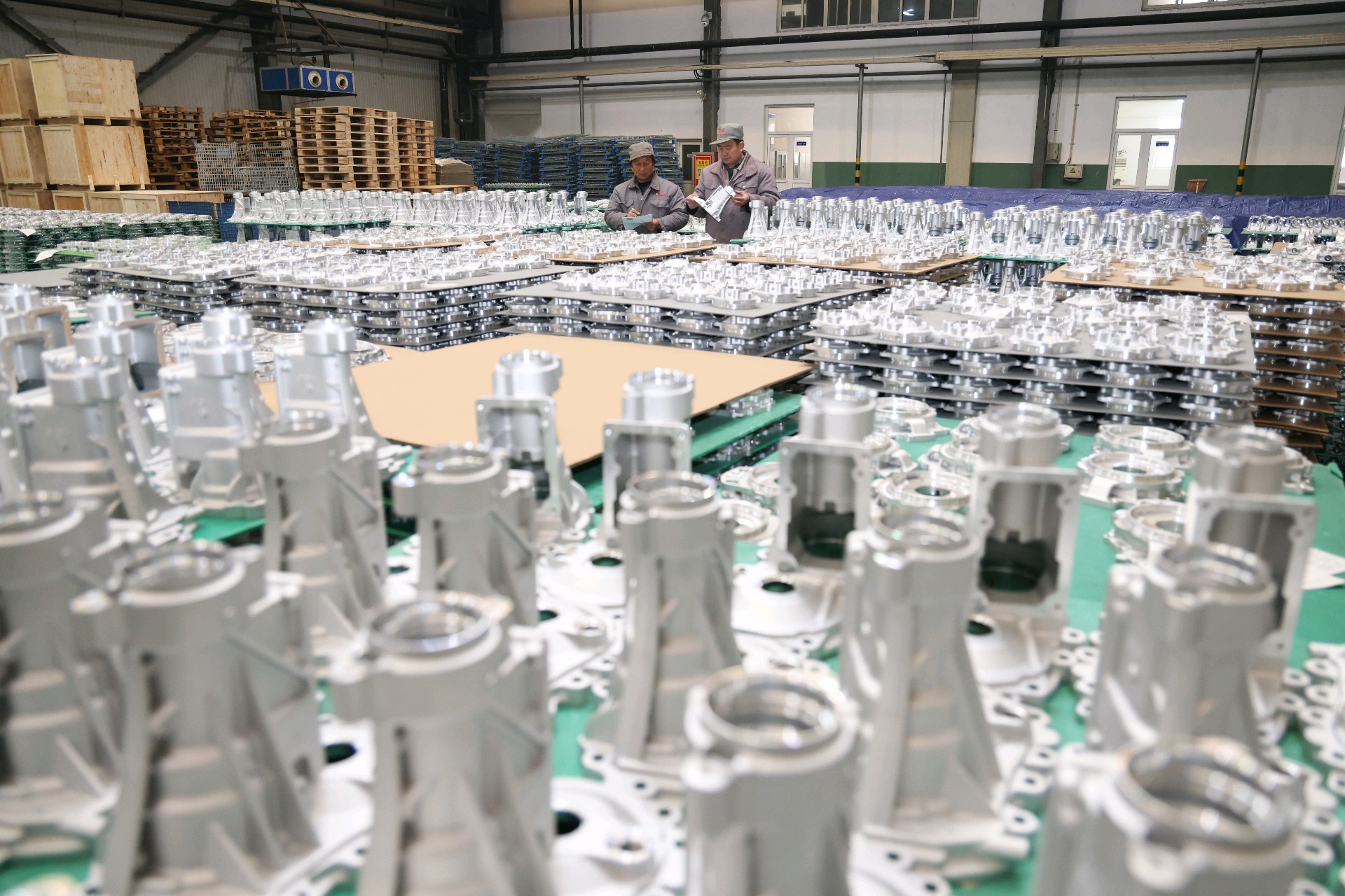 1月4日,在邹平市韩店镇天晟金属科技有限公司生产车间内,工人们正加紧完成来自国内外的订单。据悉,该公司是一家集汽车零部件产品科技研发、铝合金熔炼、铝合金压铸件、精密加工等于一体的高科技创新型企业,年生产能力500万件,产品远销美国、加拿大、意大利、墨西哥等多个国家。