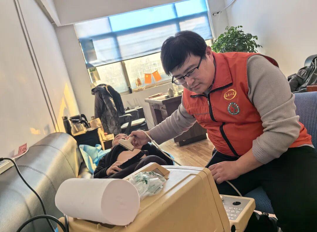 科普讲座结束后,两位专家分别为群众开展了彩超检查。燕主任开展了乳腺彩超和甲状腺彩超检查,对检查中发现的异常情况提出了后续诊疗指导。