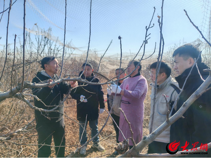 1月2日,菏泽市林业局首席专家、二级研究员王海明与定陶区林业服务中心正高级工程师李学俊一行3人,深入到定陶区杜堂镇的菏泽天润果树生态产业园开展调研指导工作,为园区果树冬季管理精准“开方”。