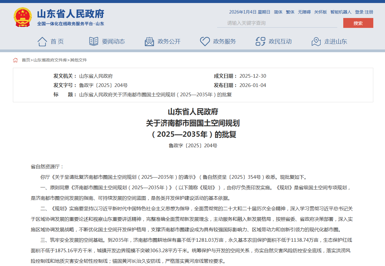 《济南都市圈国土空间规划(2025—2035年)》获批