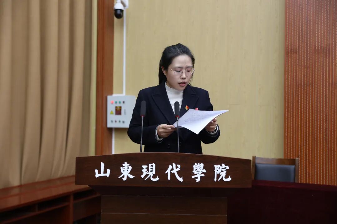 副校长解银苹作《关于修改〈山东现代学院章程〉的说明》和《关于印发〈山东现代学院关于进一步加强师德师风建设的意见〉的说明》的报告。