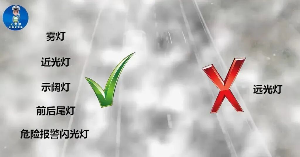 各位驾驶人应尽量避免在浓雾时段行车,行车途中如遇团雾天气 ,要时刻保持警惕,做到“降速、控距、亮尾” 。