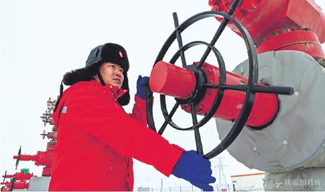 1月2日,中国石油新疆油田公司吉庆油田作业区工作人员在油井井口操作阀门。2025年,该作业区生产原油178.3万吨,创历史新高。新年伊始,吉庆油田全体工作人员铆足干劲向着更高目标奋进。张昀摄