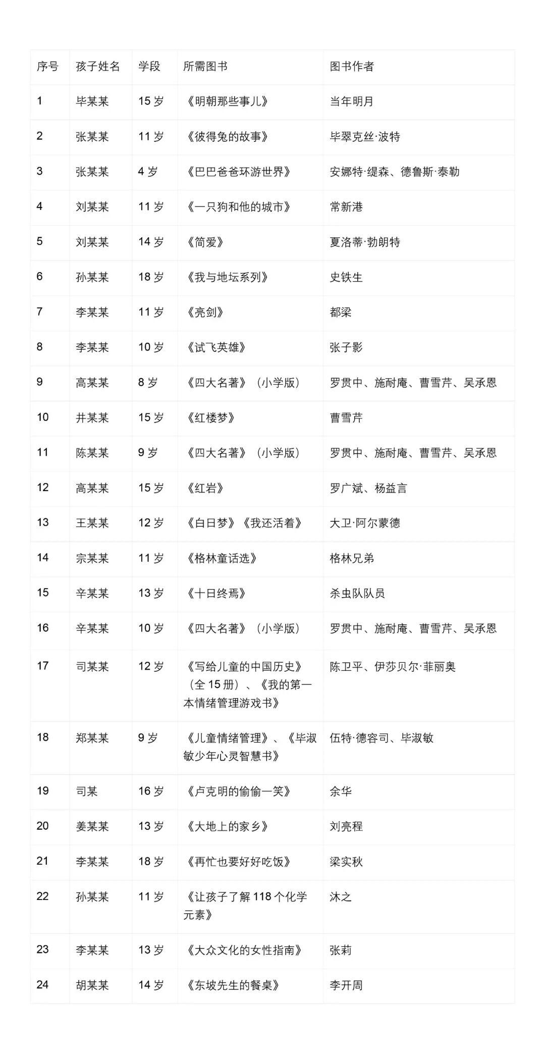 2026年爱心妈妈结对困境儿童共读心愿书单(第一批)