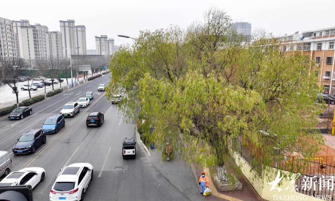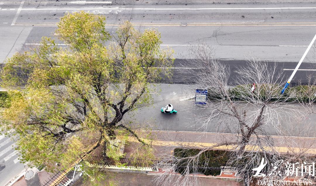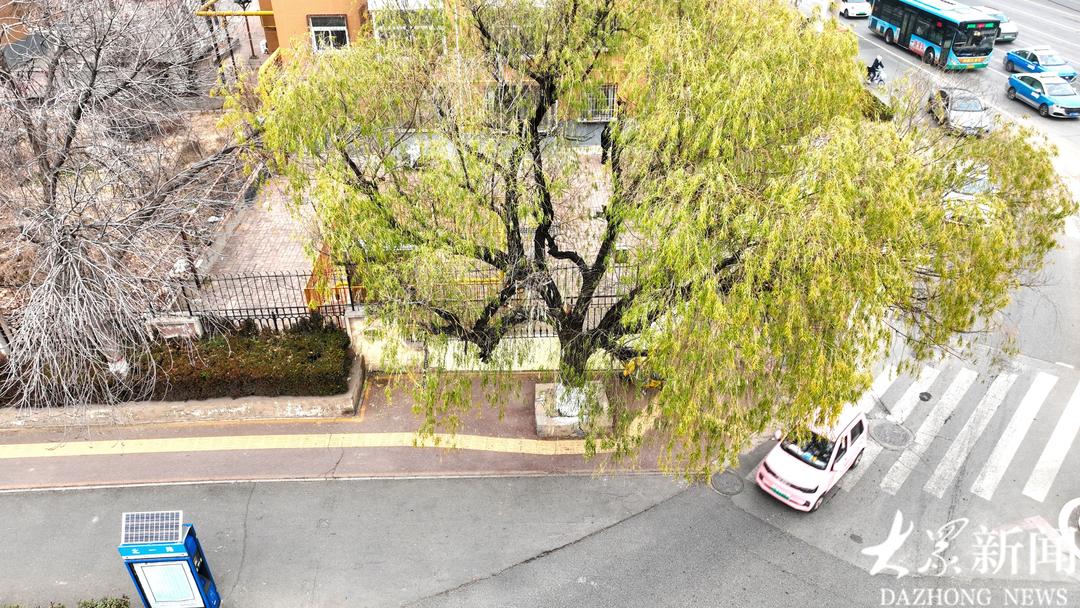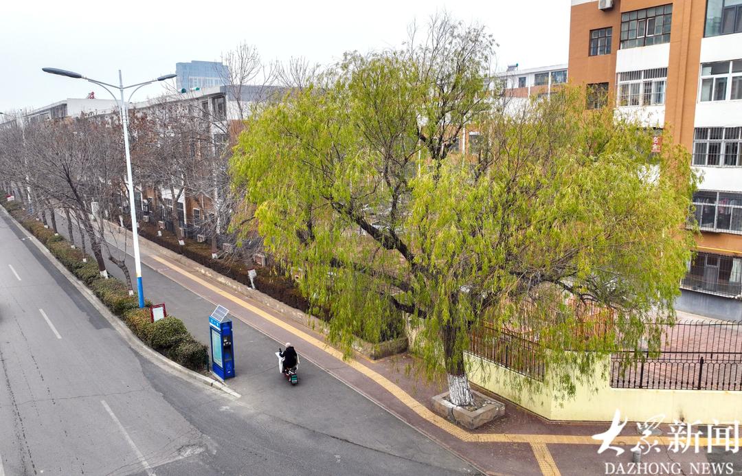 1月4日,东营市东营区北一路与西二路交叉口,一棵直径约40厘米的垂柳成了街头“显眼包”,寒冬时节依旧枝叶葱郁、绿意盎然,与周边落叶凋零的树木形成鲜明对比,被市民亲切唤作“柳坚强”。