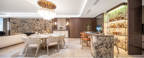 启元深谙层峯居住诉求,摒弃多余的浮华堆砌,在空间的研磨中透出质朴奢华的内核。约60㎡LDK空间,铺卷IMAX级视野。奢配V-ZUG厨电,烹饪阖家晚宴。儿童房&尊亲房设计,安放三代同堂的栖居生活。藏品级套卧双衣帽间设计,四季分储随心而安。书房连接露台,天际视野款待层峯。