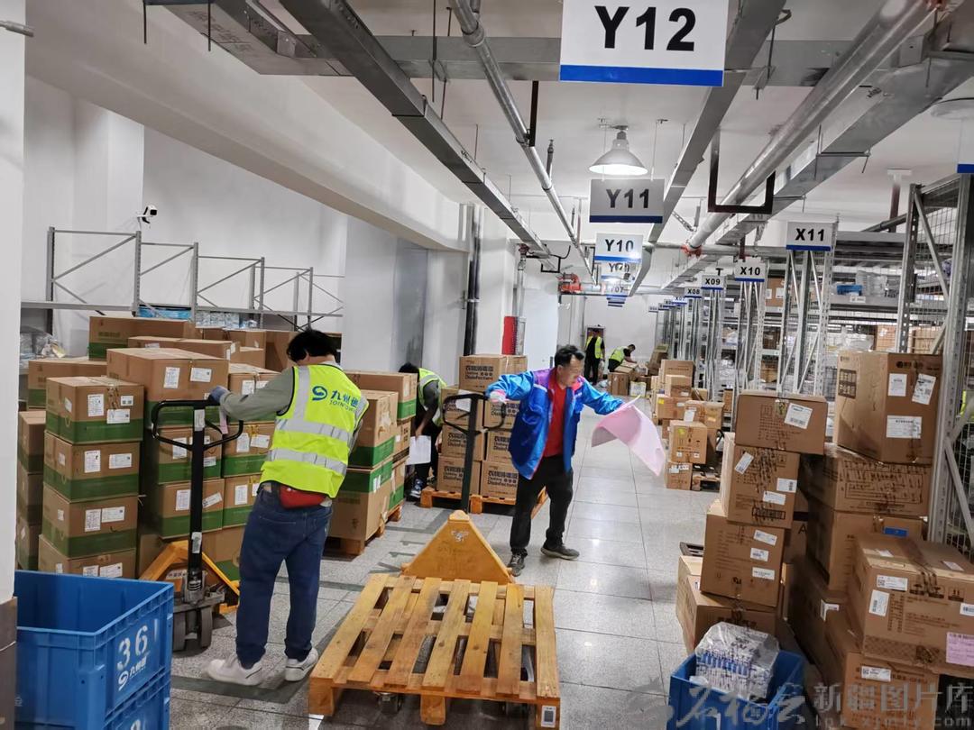 1月1日零时,新疆九州通医药有限公司物流仓库内仍是一派繁忙景象:分拣传送带上药品箱飞速流转,复核区工作人员仔细核对订单信息,打包区胶带缠绕声此起彼伏。