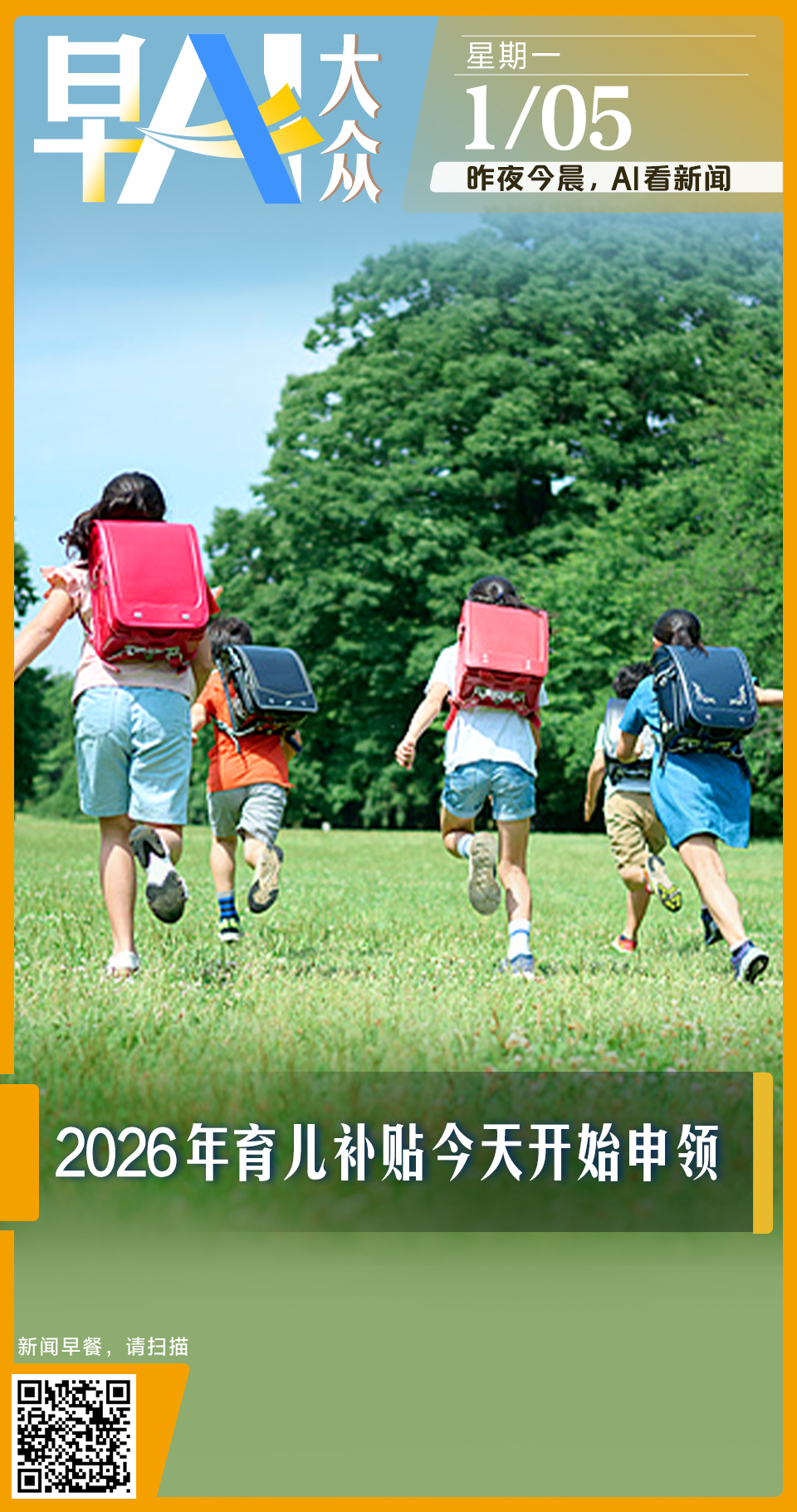 早AI大众|2026年育儿补贴今起申领;青岛港开通澳大利亚直航新航线