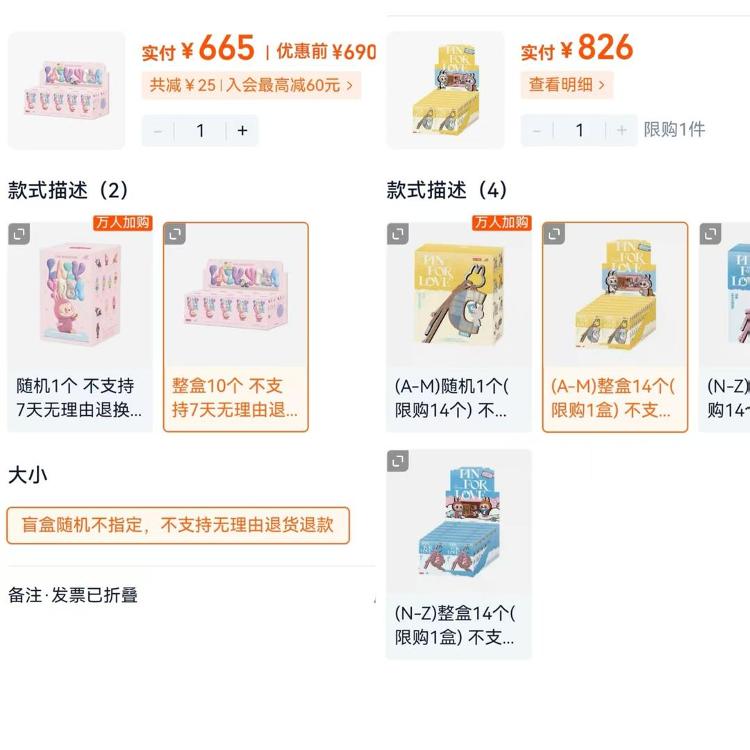 近日,消费者杨女士发现,自己喜欢的一款LABUBU怪味便利店系列盲盒产品,在泡泡玛特天猫旗舰店就能轻松买到,单盒和端盒都能轻松买到。除此之外,LABUBU心底密码、慵懒瑜伽等热门系列的盲盒也有现货。“一些系列的隐藏款也能买到,这在之前还是很难抢的。”
