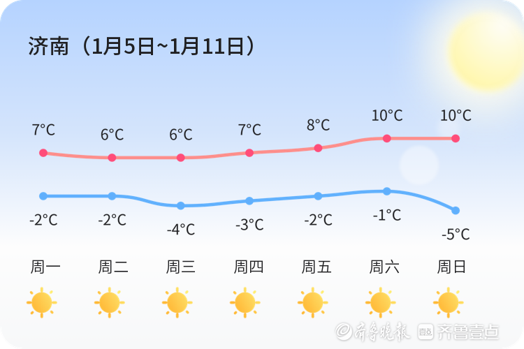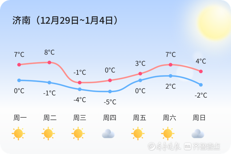 上周(12月29日~1月4日)我市晴天比较多,可能还会有阴等天气。全市周平均最高温4℃,平均最低温-1℃,平均气温1℃,周最高气温8℃,出现在周二,周最低温-5℃,出现在周四。具体气温变化情况如下图。本周总体以晴为主基调。具体天气情况请关注每日天气情况预告。本周气温变化情况:最低气温-5~-1℃,最高气温6~10℃。需要关注及时最新预报。具体气温变化情况如下图。