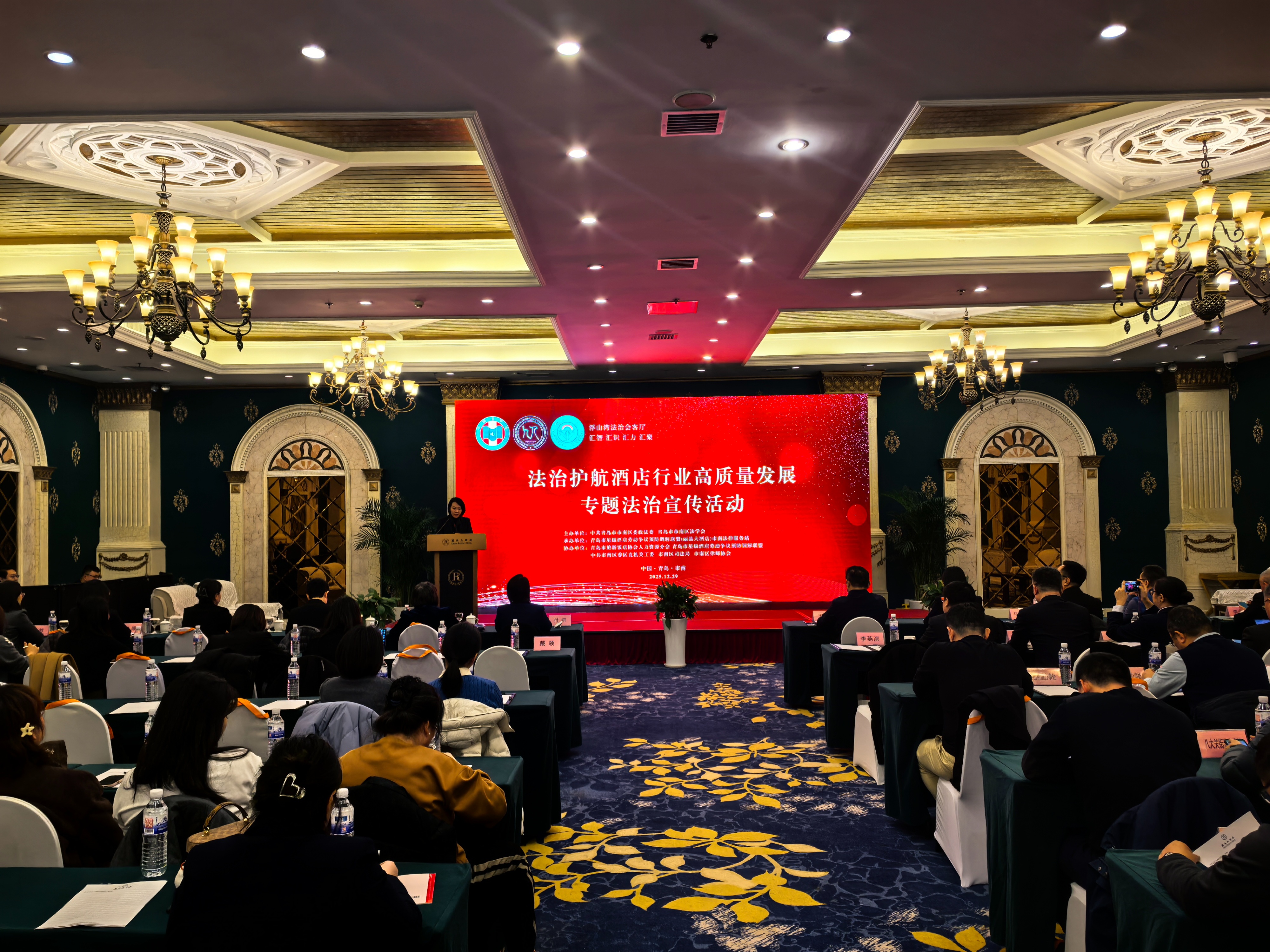 为规范行业劳动用工管理、防范用工风险,以法治力量助推酒店服务业高质量发展,2025年12月29日,“法治护航酒店服务业高质量发展”专题法治宣传活动在青岛丽晶大酒店星级酒店调解联盟法律服务站成功举办。本次活动由青岛市市南区委政法委、市南区法学会主办,青岛丽晶大酒店承办,青岛市劳动人事争议仲裁院、青岛市旅游饭店业协会人力资源分会等单位协办。市南区法学会会员单位、法学界专家学者、所辖街道办事处、相关律所及青岛市旅游饭店业协会人力资源分会所属酒店的人力资源经理作为企业代表共100余人齐聚现场,共话行业法治建设新路径。
