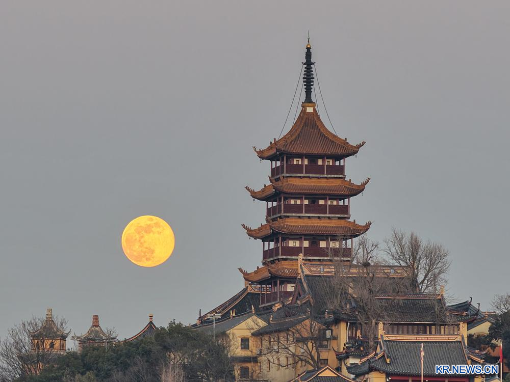 이날 장쑤(江蘇)성 난퉁(南通)시에서 드론으로 포착한 슈퍼문. 2026.1.3