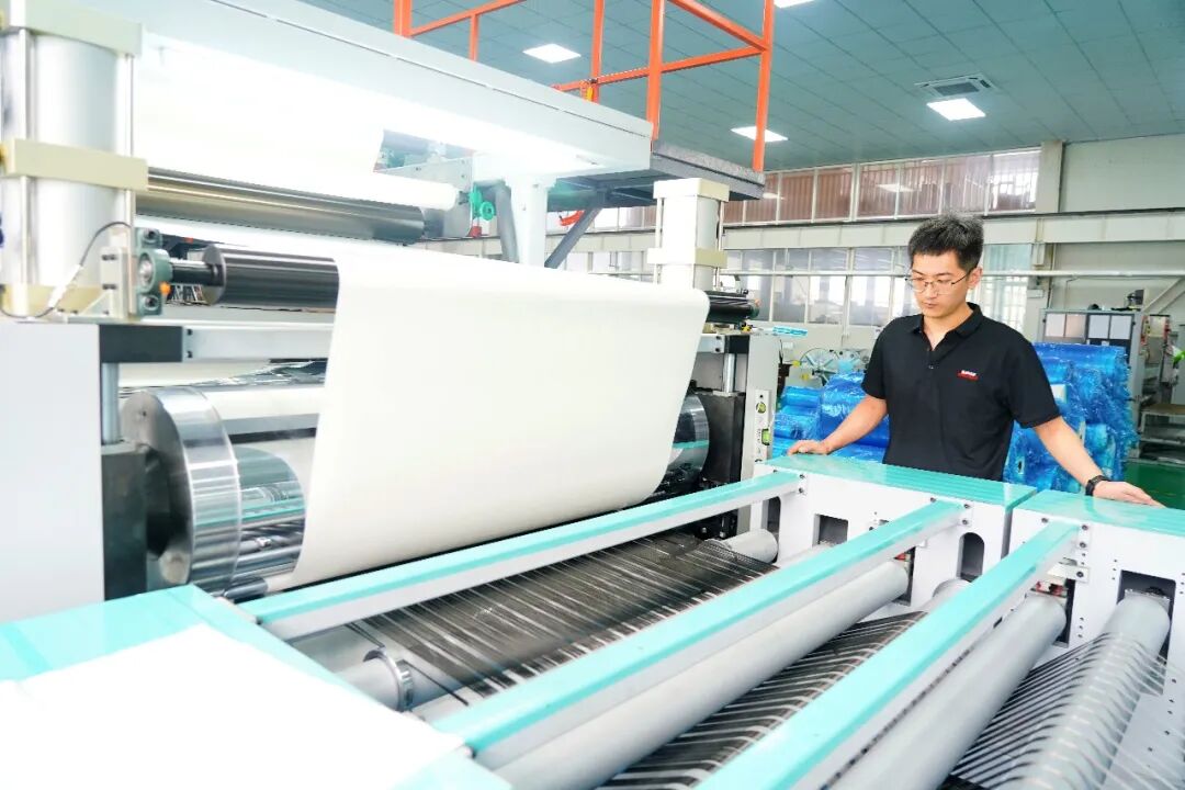 威海富碳科技有限公司的5000平方米的车间内,三条预浸料生产线与一条制品生产线有序排列,不到50名工人便能支撑全流程高效运转——每条线仅需3至4人负责巡视、上料等运行工作,核心环节全由智能设备把控。