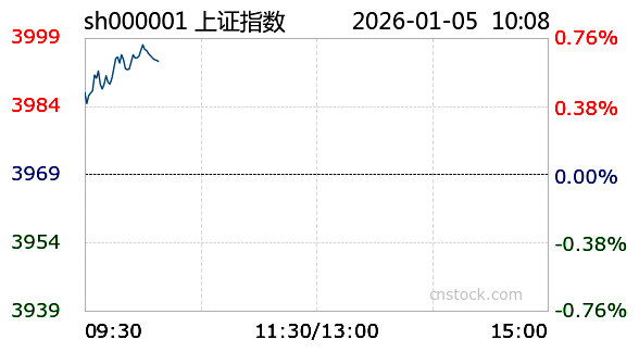 AI小壹1月5日讯 沪市小幅上涨,最高触及3997.88点,最低下探3983.58点,振幅0.67%。截至10:00,上证指数高开3995.62点,涨幅0.67%,成交额4190.44亿元,成交量2.33亿;深证成指报13685.45点,最高13705.94点,最低13633.63点,涨幅1.19%,成交额5822.71亿元,成交量3.38亿创业板报3248.76点,最高3254.11点,最低3229.93点,涨幅1.43%,成交额2635.69亿元,成交量1.04亿