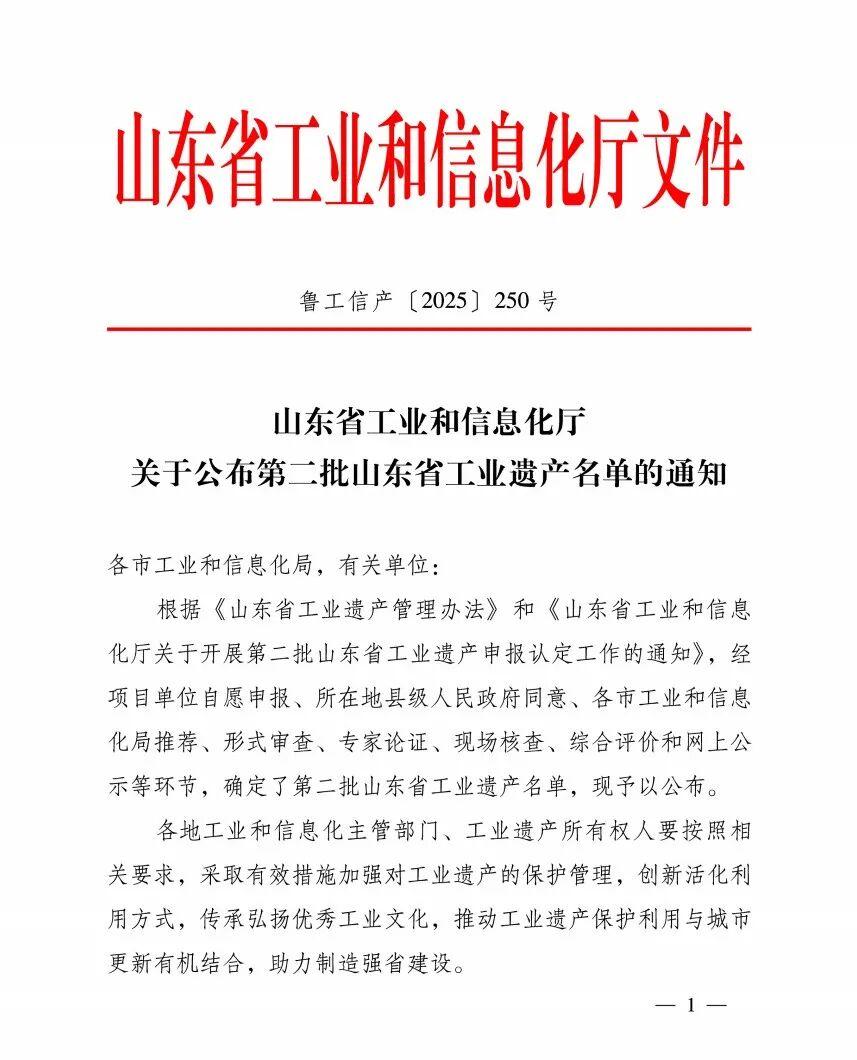 2025年12月29日,山东省工业和信息化厅发布通知,公布了第二批山东省工业遗产认定名单,古贝春集团有限公司发祥地“古贝春酒厂旧址”成功入选。