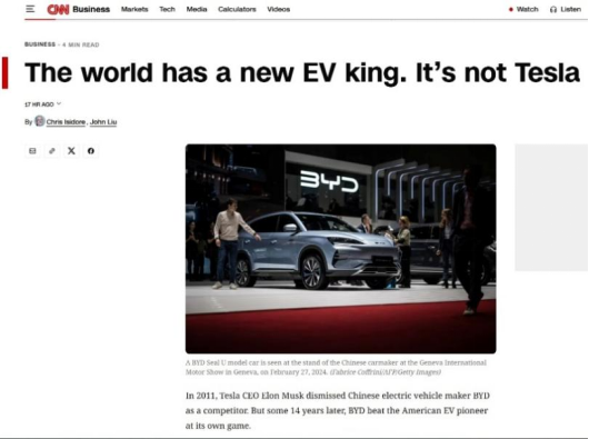 美国媒体CNN报道:世界迎来新的电动汽车王者,并非特斯拉