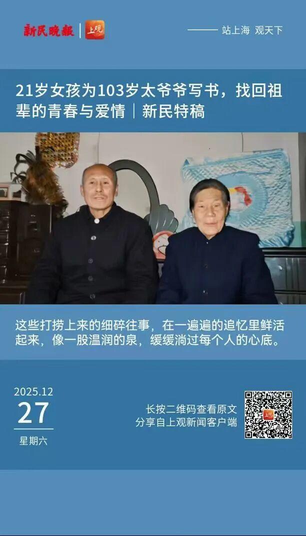 新民晚报:《21岁女孩为103岁太爷爷写书,找回祖辈的青春与爱情》