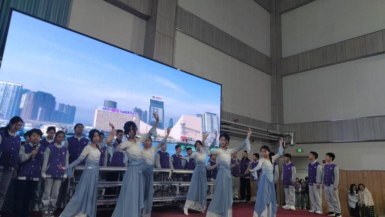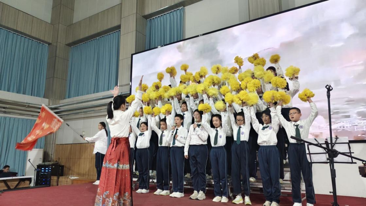 值得关注的是,各班在编排中巧思频现,充分挖掘学生特长,将多元艺术形式与合唱深度融合。架子鼓、电子琴、葫芦丝、古筝等乐器轮番亮相,以民族与现代乐器的独特魅力为英雄赞歌赋予别样文化韵味;部分班级加入舞蹈表演,舞者灵动的身姿与歌声完美同步,增强了表演的视觉冲击力,充分展现了新时代少年的多才多艺与青春活力。其中,七年级九班的集体换装表演别具匠心,将全场气氛推向高潮,为班级合唱环节画上圆满句号。