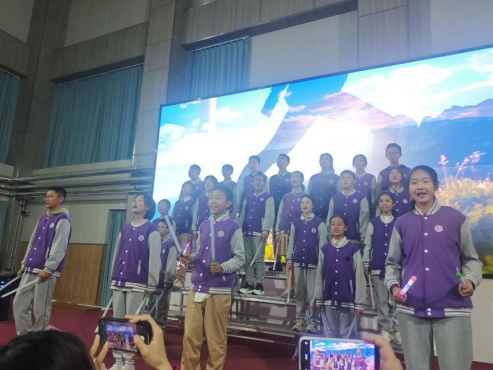 活动最後,全体七年级师生共同起立,挥舞荧光棒齐声高唱《我相信》。激昂的旋律响彻体育馆,歌声中饱含着自信与力量,承载着对未来的无限憧憬。师生声音交织汇聚成温暖的暖流,传递出团结拼搏、奋勇奋进的精神力量,现场无分师生界限,尽显集体同心、传承英雄精神、共赴美好未来的真挚情怀。