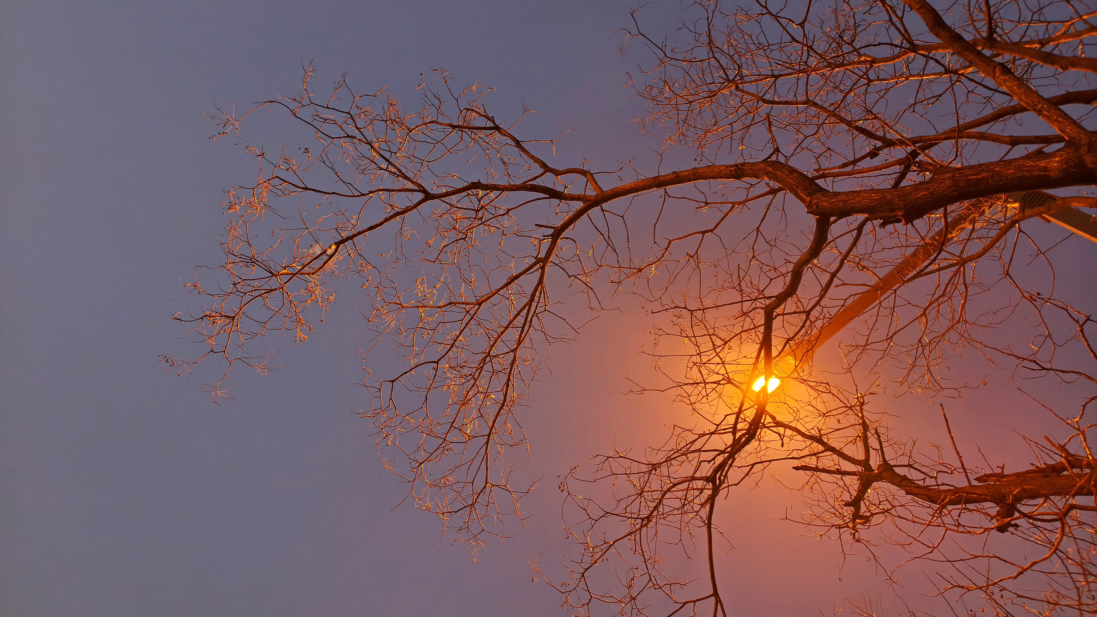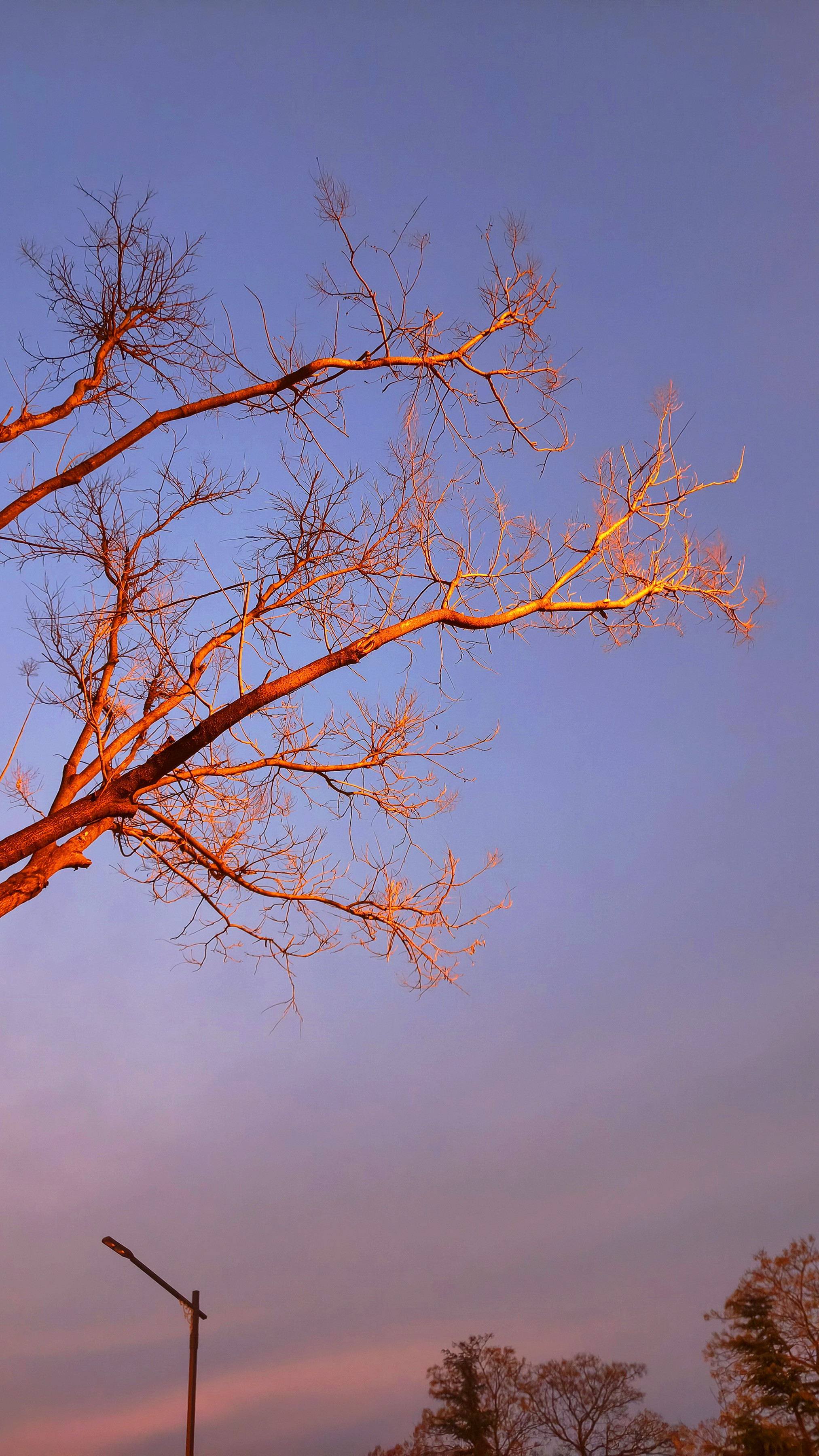 冬天树的枝干别有韵味,路灯的光线洒落枝头,树的轮廓被镀上金边,每一个枝杈都成了光的使者,像极了一幅幅金箔画。(利津县委办公室李树军拍摄)