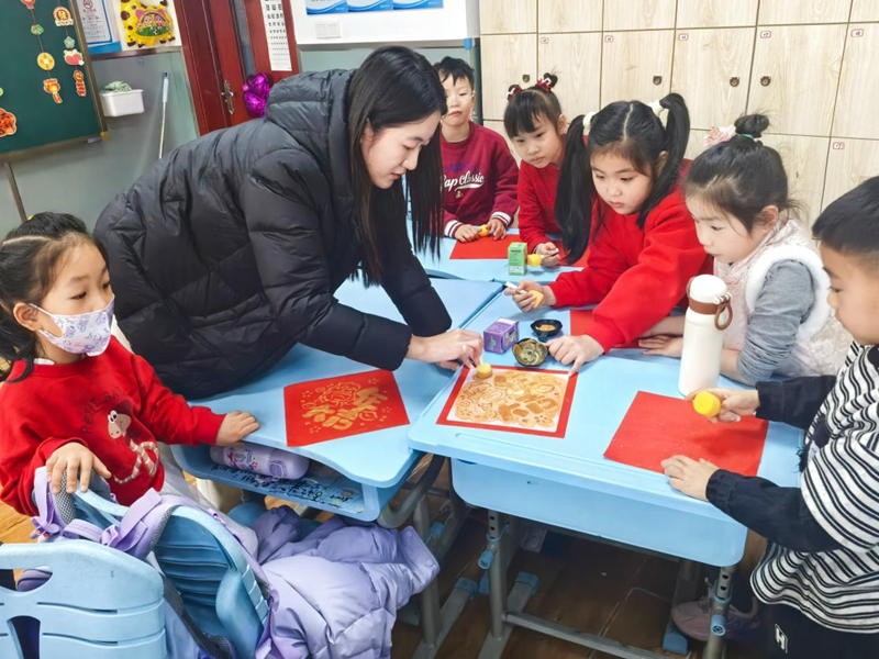 知识科普后,充满传统韵味的“拓印福字”活动以及“亚洲美食鉴赏会”将活动氛围推向高潮。同学们小心翼翼地将宣纸覆盖在模板上,用小刷子轻轻蘸取颜料后均匀涂抹亲手拓印的福字,为新年增添一份喜庆和吉祥。之后的亚洲美食交换环节,各位同学通过分享自己精心准备的亚洲区域国家零食,不仅品尝到了各地的美味,更增进了他们之间的友谊。而全体家长的“新年寄语”更为小小少年带来了新年的“心理能量”,一句句饱含深情的话语,温暖着每一个孩子的心田。