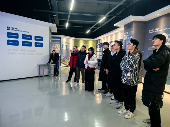 活动伊始,同学们在公司生产副总裁刘绍亮的陪同下,深入参观了锂电池生产车间与产品检验线,对现代化新能源产品的制造流程有了直观认识。在产品展厅,公司副总裁程雷详细讲解了企业的战略规划、组织架构与特色文化。