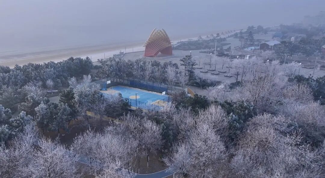 冰雪将沙滩与松林裹成银装冬日的南海集齐了所有浪漫元素